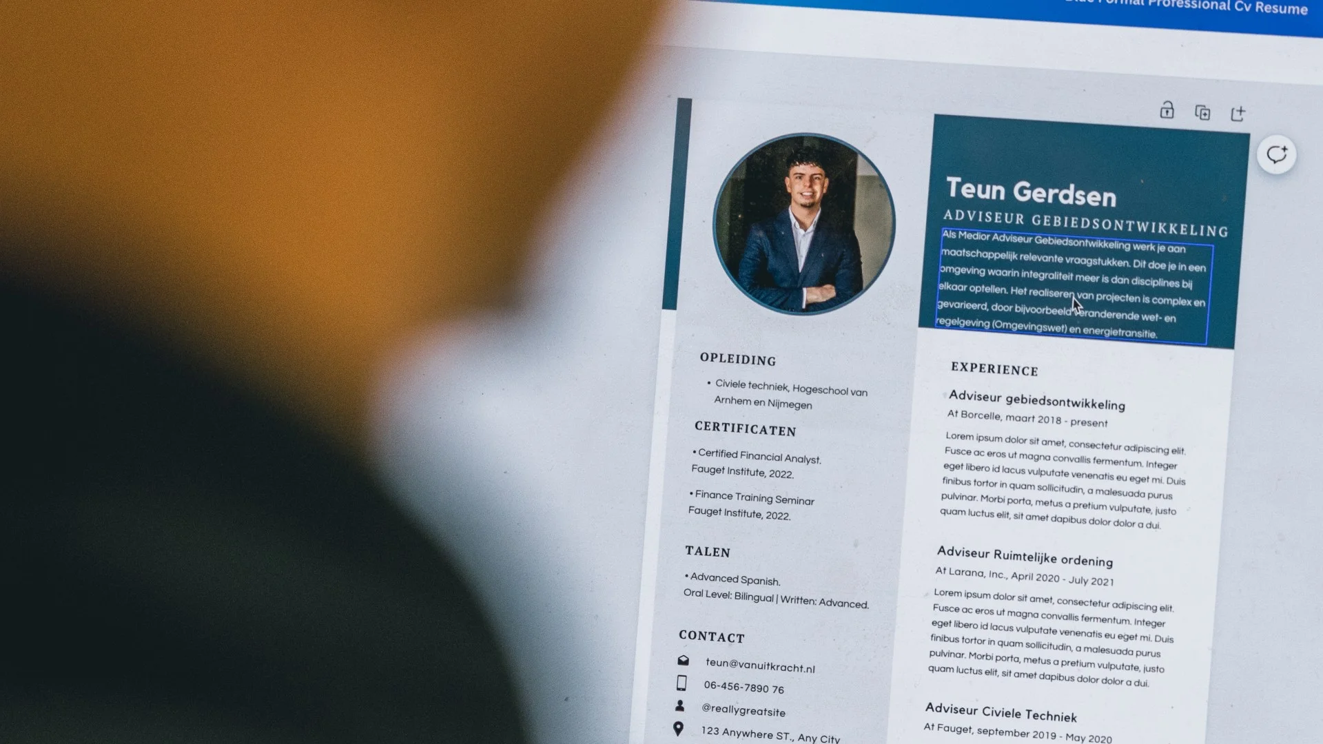 Een sterke samenvatting of profielschets aan het begin van je cv kan werkgevers helpen snel een idee te krijgen van wie je bent en wat je te bieden hebt. Gebruik dit gedeelte om je belangrijkste vaardigheden, ervaringen en carrièredoelen te benadrukken.