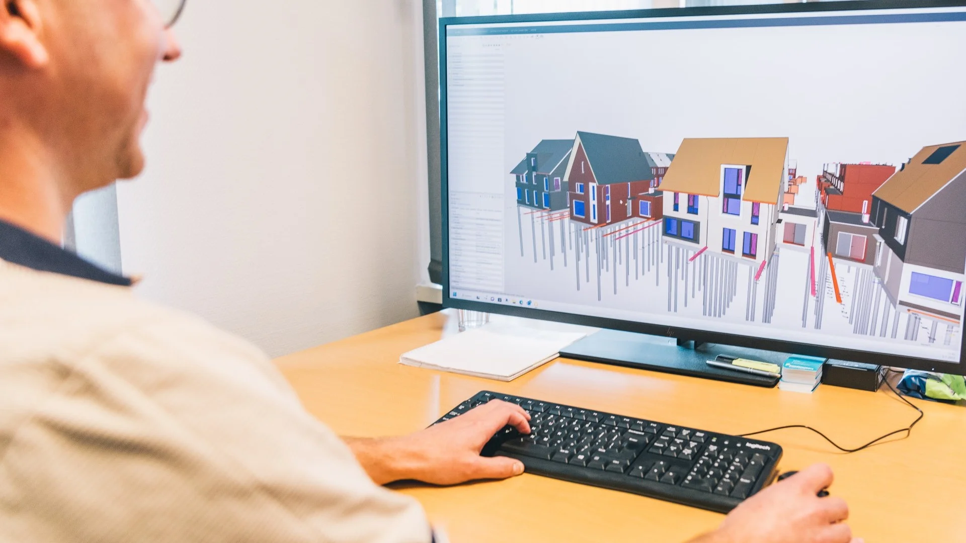 Dat daar veel bij komt kijken, verbaast ons niks. Voor Jordy was deze nieuwe stap ook wel even wennen. "Ik ben veertien jaar werkzaam geweest in de onderaannemers branche, in de leveranciers branche. Daarin ben je heel gespecialiseerd bezig met één product en dit is toch wel heel breed." Dat je overal iets vanaf moet weten en dat uiteindelijk het hele project wordt opgeleverd met alles wat Jordy heeft voorbereid, geeft hem uiteindelijk de meeste voldoening en het meeste energie. Het leukste aan het werk van Jordy? "Toch wel dat je buiten gemaakt ziet worden wat jij dagelijks op een tekening en in een model voorbij ziet komen. Je ziet vervaardigd worden waar je dagelijks met je neus in zit."