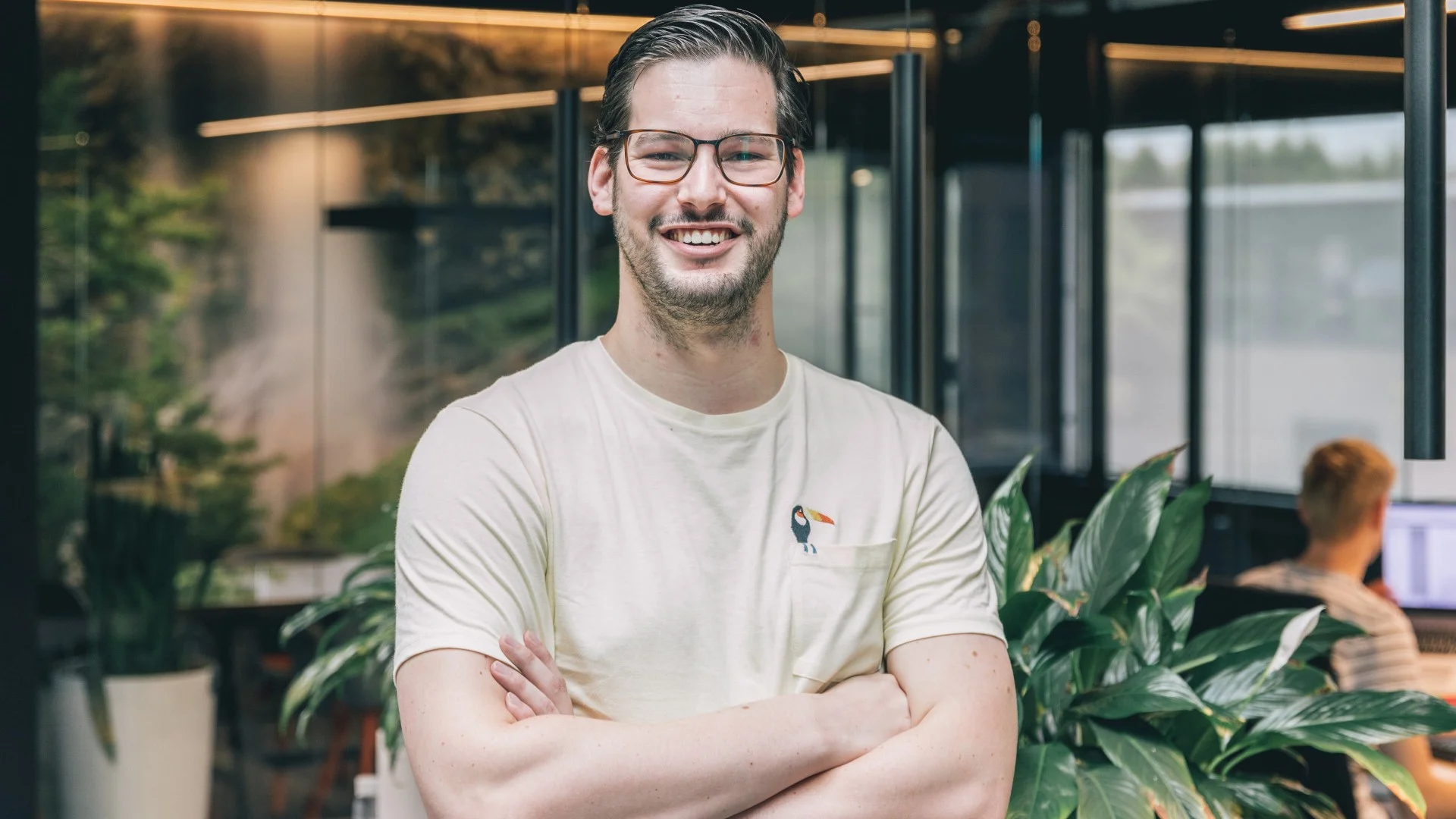 Ik ben Thimo van Haeren en ik ben hier in 2019 begonnen als 3de-jaars stagiair bouwkunde. Na een half jaar hebben ze me hier een nulurencontract aangeboden en sindsdien ben ik eigenlijk blijven plakken. Naast school heb ik hier altijd nog een paar uurtjes gewerkt en uiteindelijk heb ik een baan aangeboden gekregen als modelleur, zowel bouwkundig als constructief. Dat is één van de redenen dat ik hier binnen ben gerold. Maurice, mede-eigenaar van conStabiel, heeft meteen vanaf het begin gezegd: "Jij bent niet iemand die zich gaat specialiseren. Jij wil de breedte op." En dat is ook nog steeds zo. Ik vind de afwisseling tussen het constructieve en het bouwkundige erg interessant.